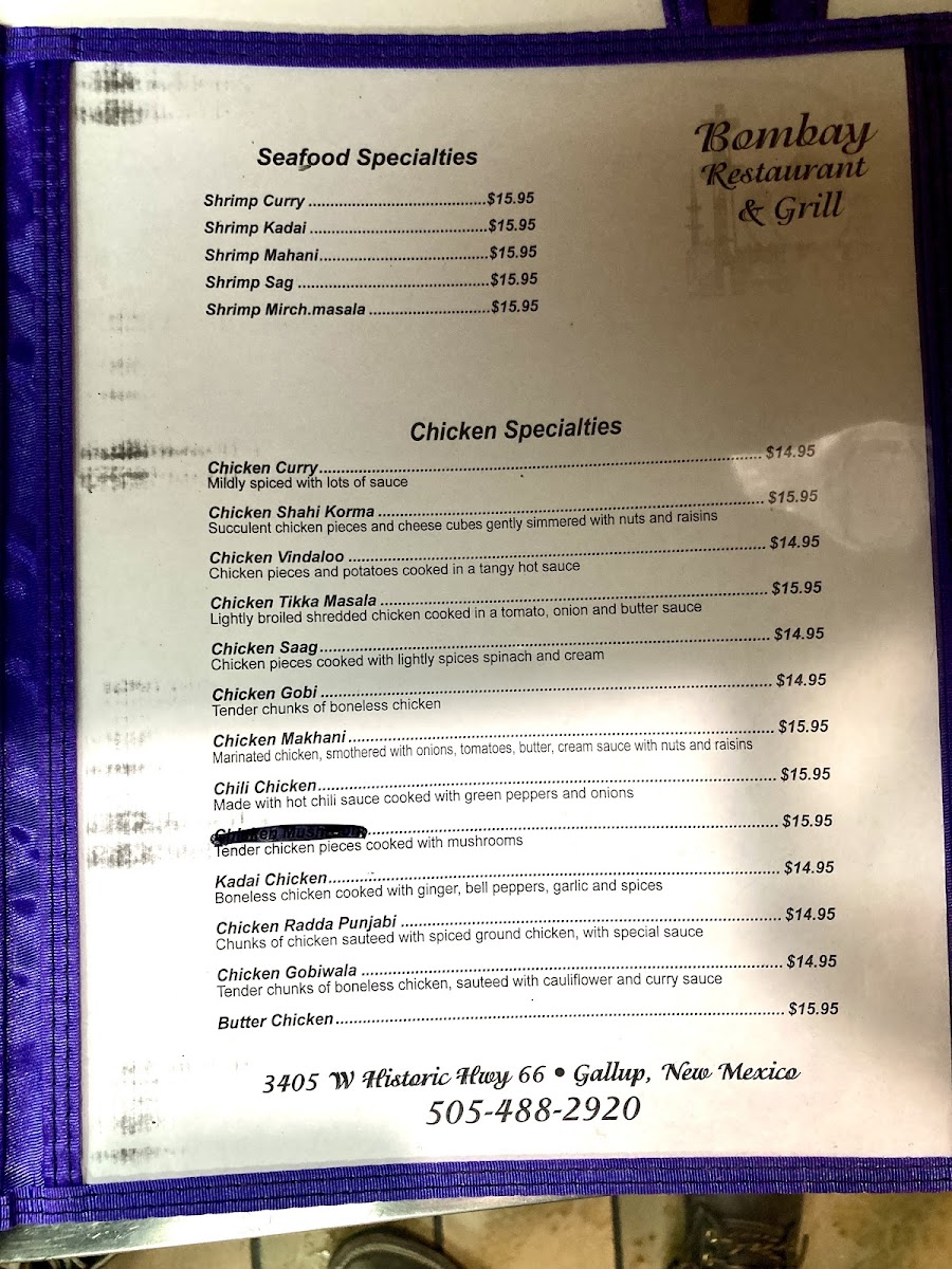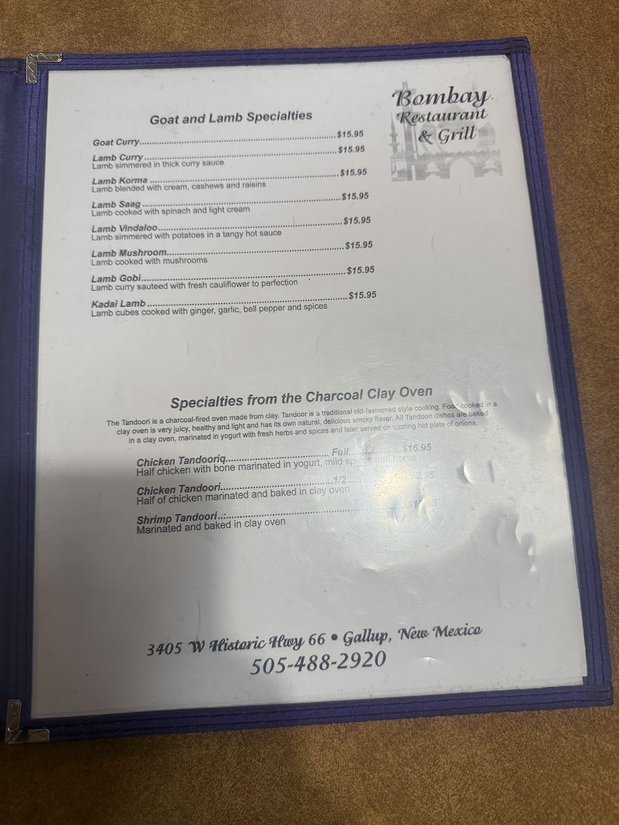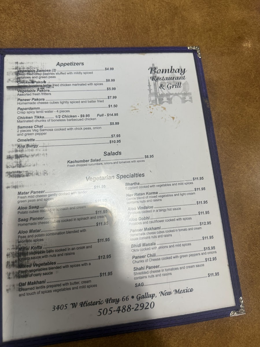 Bombay Restaurant and Buffet Menu