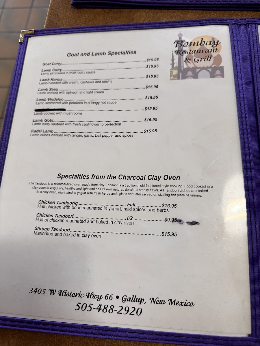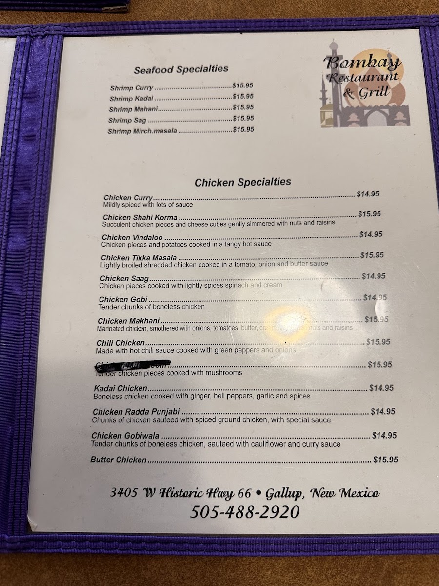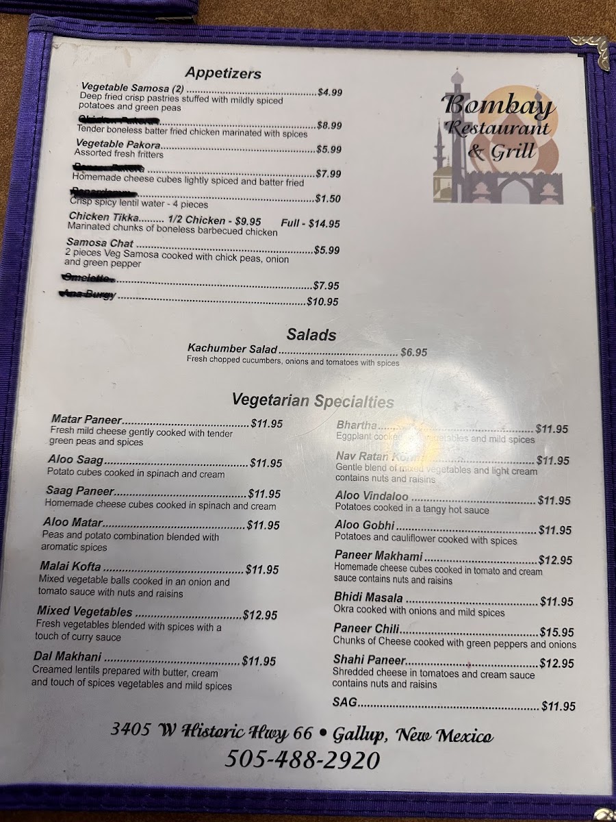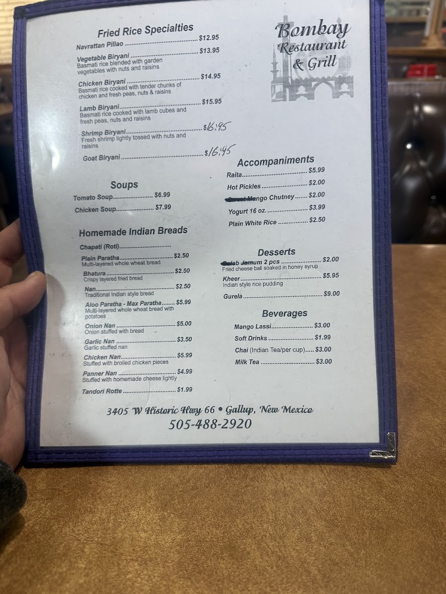 Bombay Restaurant and Buffet Menu